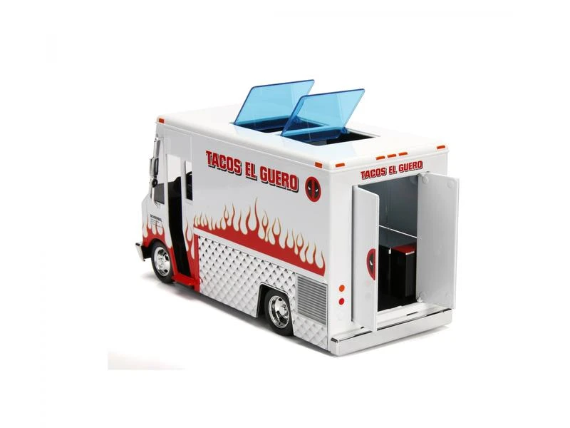 Mit Deadpools Taco Truck ist jeder Tag ein Taco-Dienstag. Mit versenkbaren Dachtüren und Servicefenstern, einer Schiebetür und einer realistischen mobilen Küche ist dieser Taco-Truck im Massstab 1:24 ein Blickfang in jeder Deadpool-Sammlung. Inklusive einer 100% Zinkdruckguss Deadpool-Figur. Fügen Sie ihn noch heute Ihrer Sammlung hinzu.