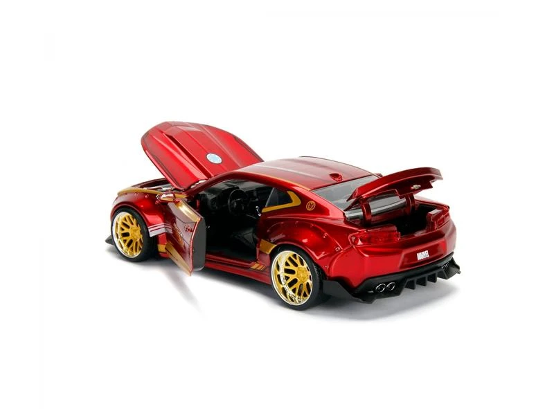 Mit Stilmerkmalen, die vom gepanzerten Avenger Iron-Man inspiriert sind, verfügt dieser 2016er Chevy Camaro mit breiter Karosserie über eine zu öffnende Motorhaube und Türen. Zu diesem Fahrzeug gehört auch eine 7-cm-Sammelfigur aus Iron-Man-Druckguss, die in jeder Fahrzeugsammlung eine herausragende Rolle spielen wird.