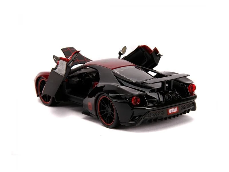 Dieser 2017er Ford GT bezieht seine Styling-Hinweise direkt von dem freundlichen Web-Slinger aus der Nachbarschaft und enthält eine zu 100% zinkdruckgegossene Miles Morales Figur. Dieses wunderschön geformte Sammlerstück wird sicherlich ein herausragendes Stück in jeder Marvel Kollektion sein.
